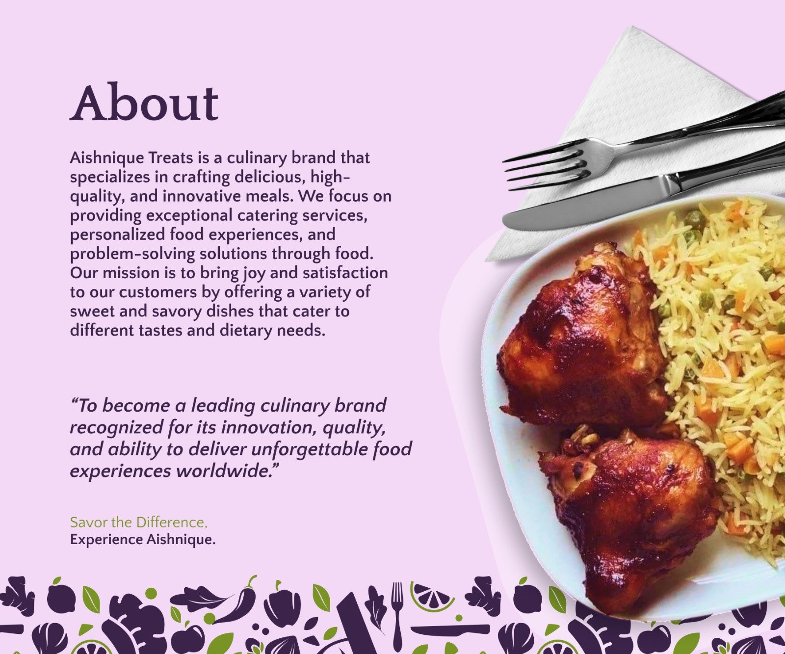 Together, these elements bring the Aishnique brand to life, promising flavour, satisfaction, and value in every meal .